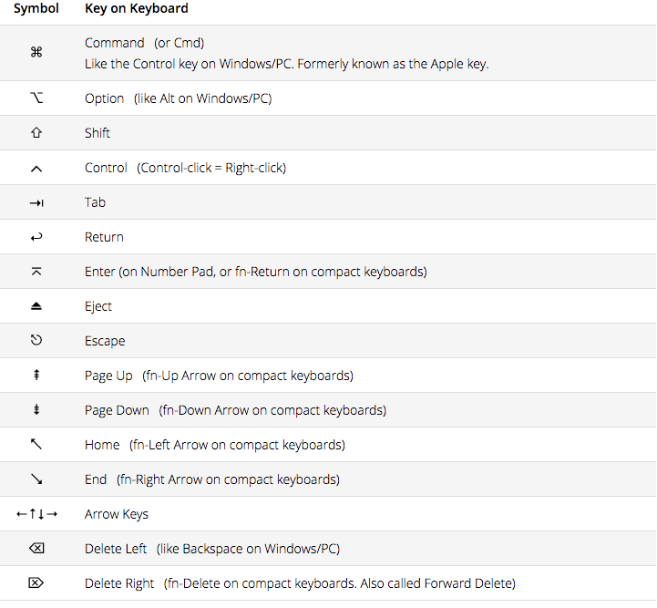Keyboard Symbols